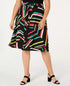 Bar III Women's Belted Button Front Printed Knee Length A-Line Skirt Black Size 18W