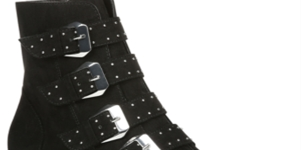 Bar III Women's Buckle Accent Studded Margo Round Toe Block Heel Zip up Booties Black Size 8.5 M