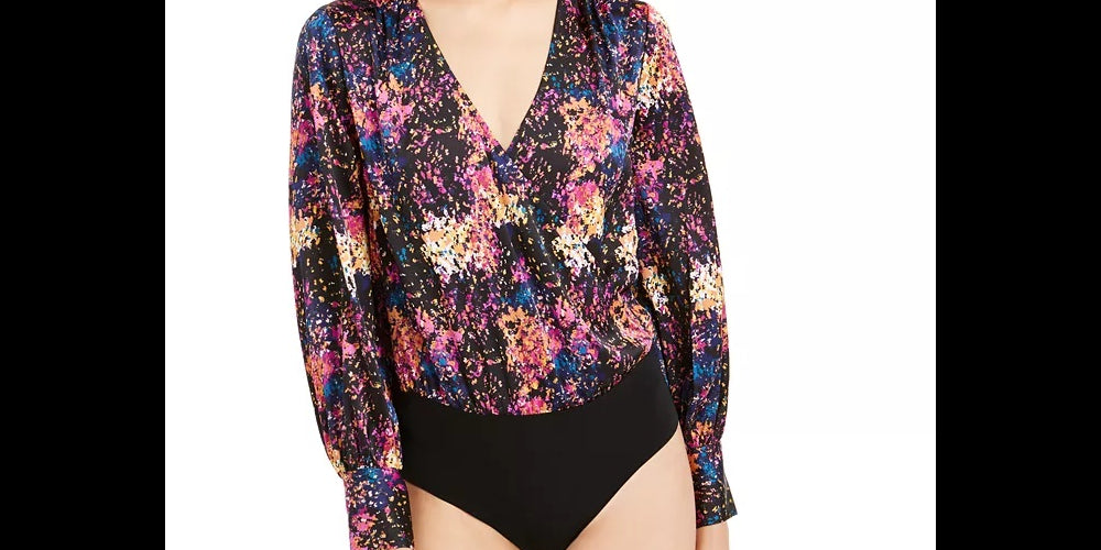 Bar III Women's Confetti Printed Surplice Bodysuit Black Size XX-Large