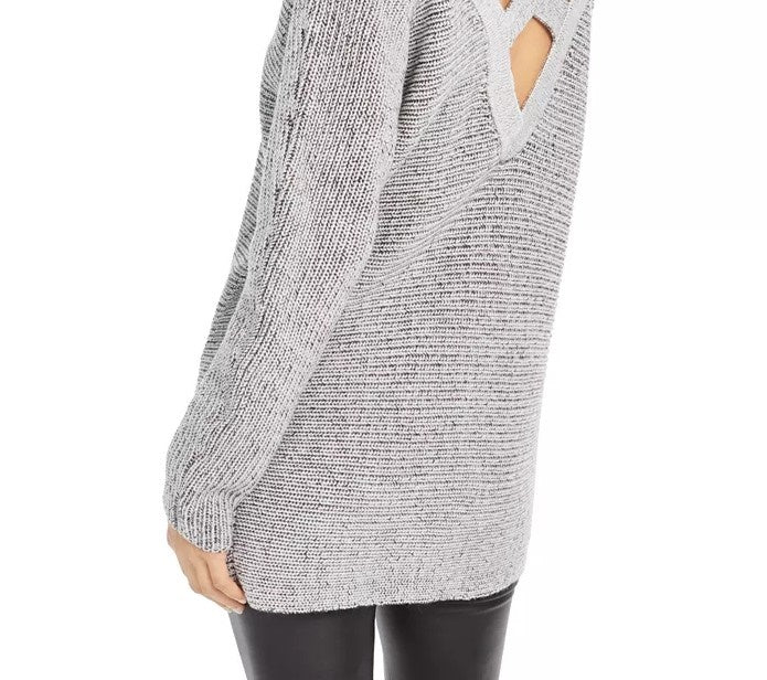 Hits below hip|Scoop neckline|Crisscross straps at back|Acrylic/wool