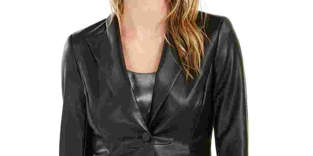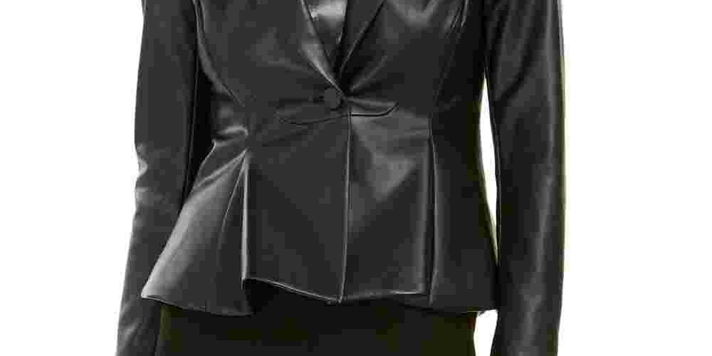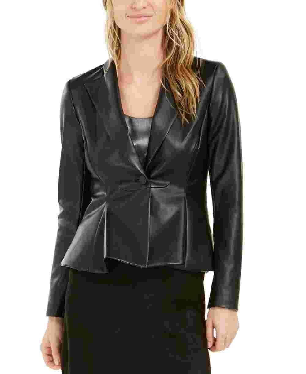 Bar III Women's Faux-Leather Peplum Jacket Black Size 8