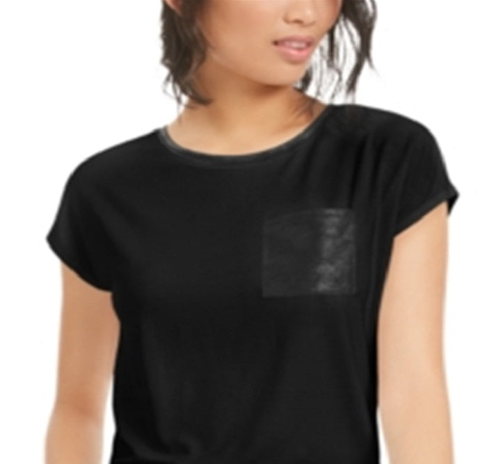 Bar III Women's Faux Leather Pocket T-Shirt Black Size X-Small