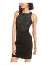 Bar III Women's Faux Leather Solid Sleeveless Crew Neck Above the Knee Fit Flare Evening Dress Black Size X-Large