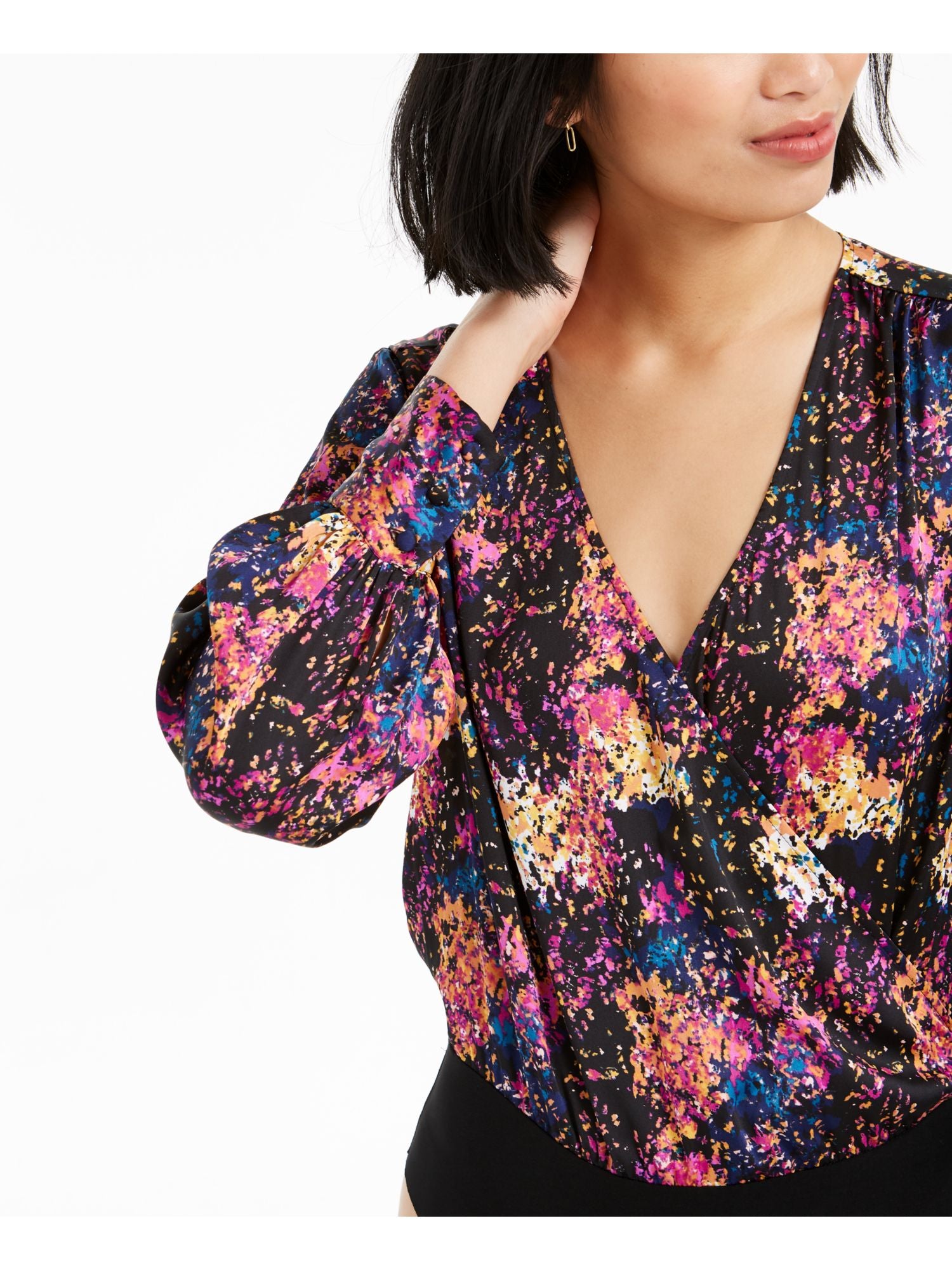 Bar III Women's Faux Wrap Printed Bodysuit Black Size X-Small
