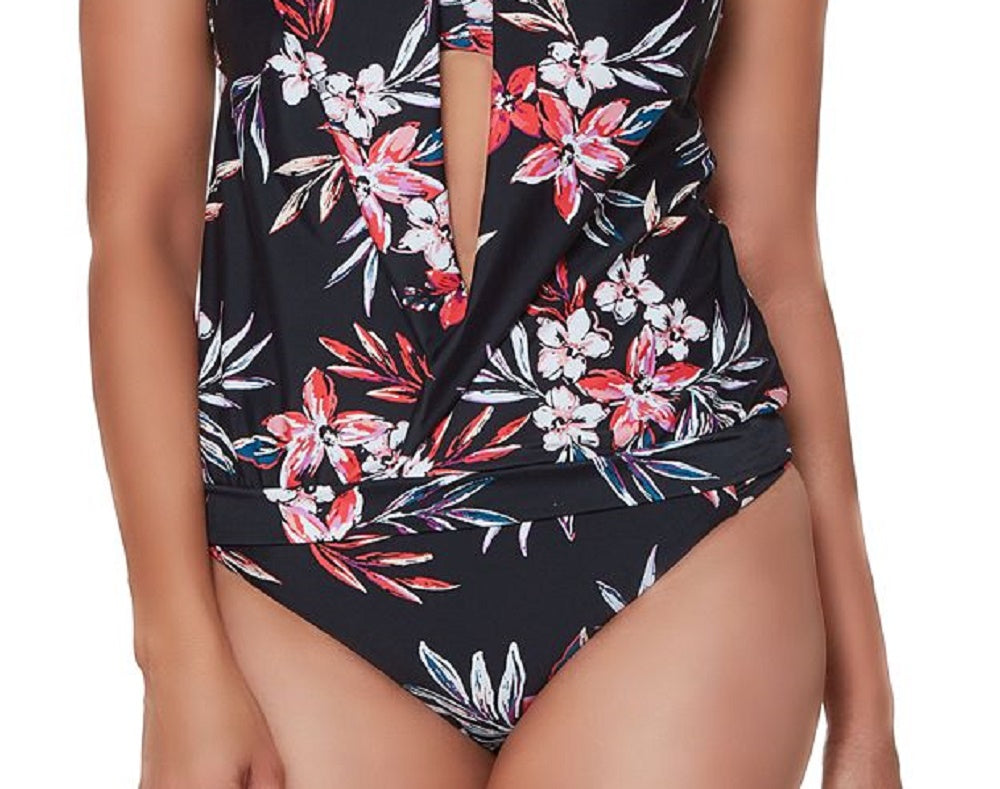 Make a stylish splash in this floral-inspired tankini top from Bar III designed with a single cutout down the front.| Non-removable soft cups| Lined| | Sweetheart neckline; cutout detail at front| Adjustable removable straps; tie closure at back| Imported