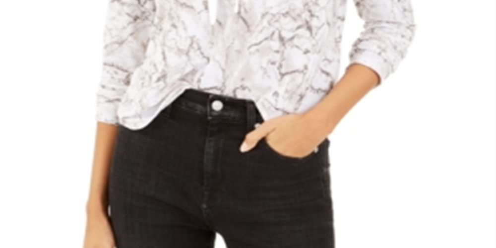 Bar III Women's Marble Print Pullover Hoodie White Size X-Large