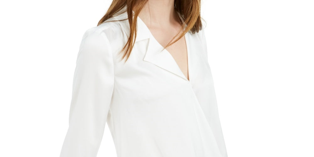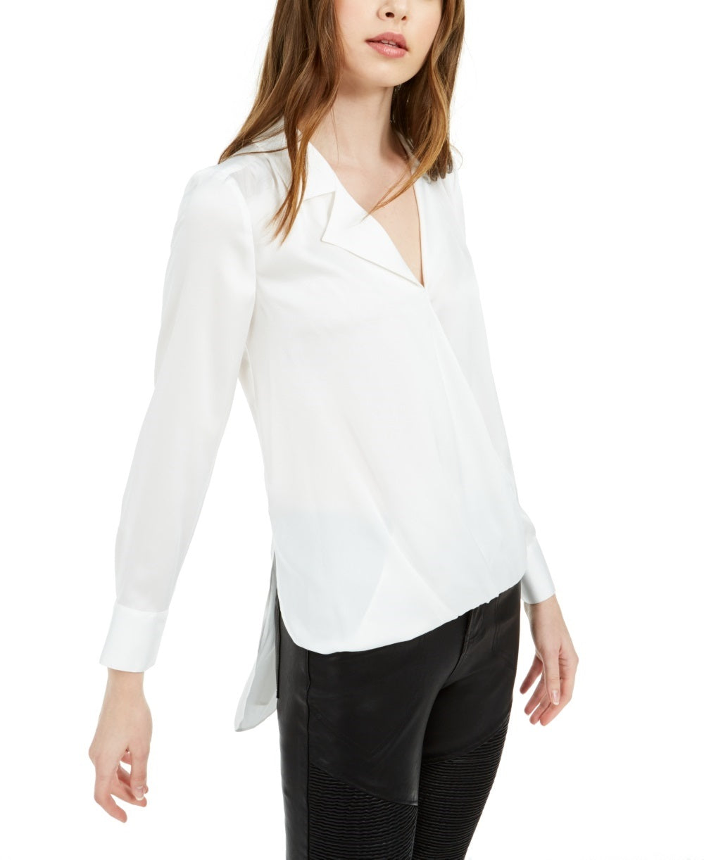 Bar III Women's Notched-Collar High-Low Top White Size X-Small