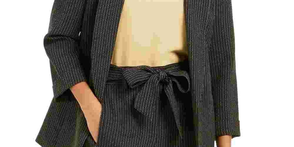 Bar III Women's Pinstripe Open Front Blazer Black Size Large
