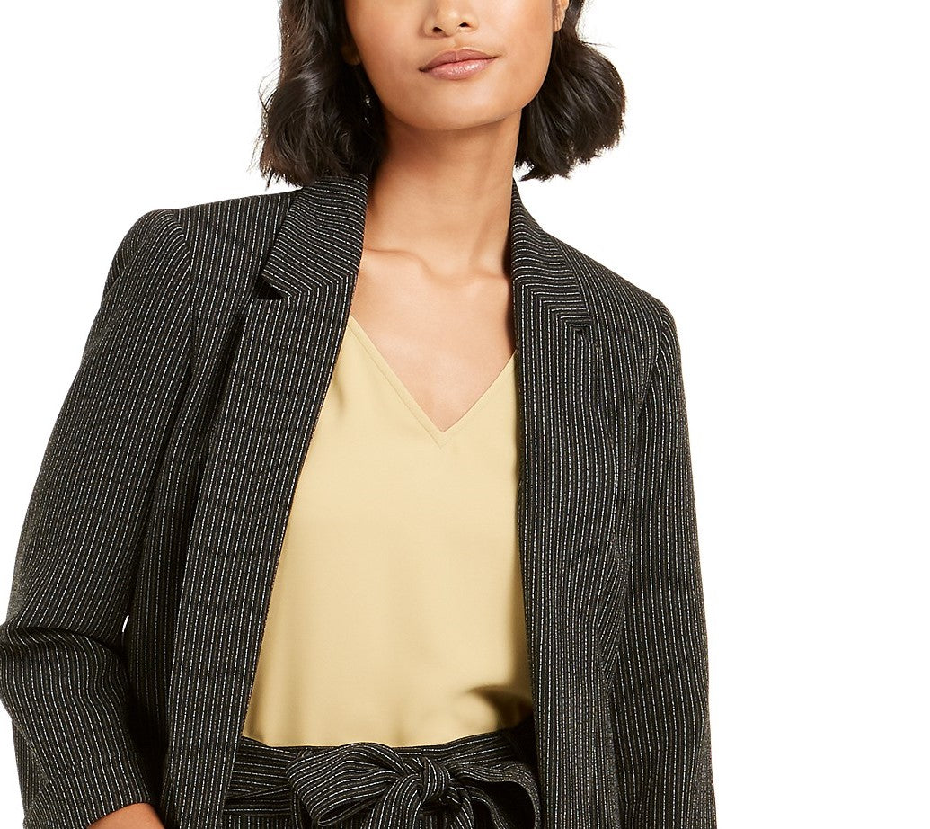 Bar III Women's Pinstripe Open-Front Blazer Charcoal Size Extra Large