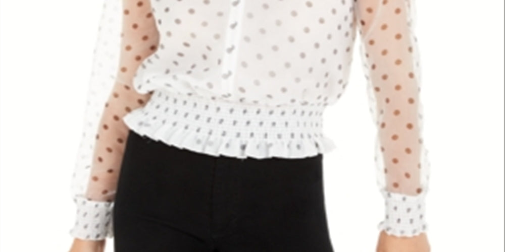 Bar III Women's Polka Dot Smocked Waist Top White Size Small