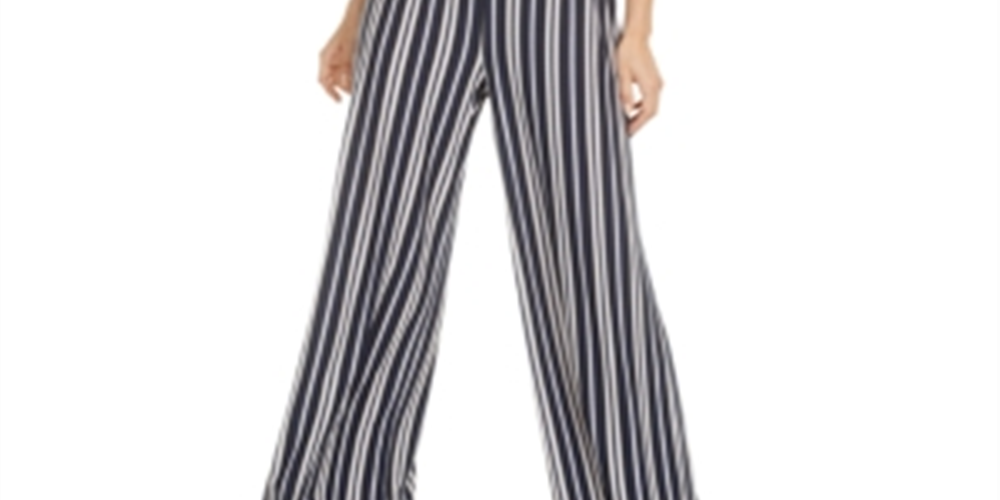 Bar III Women's Ruffle-Trim Striped Jumpsuit Blue Size M