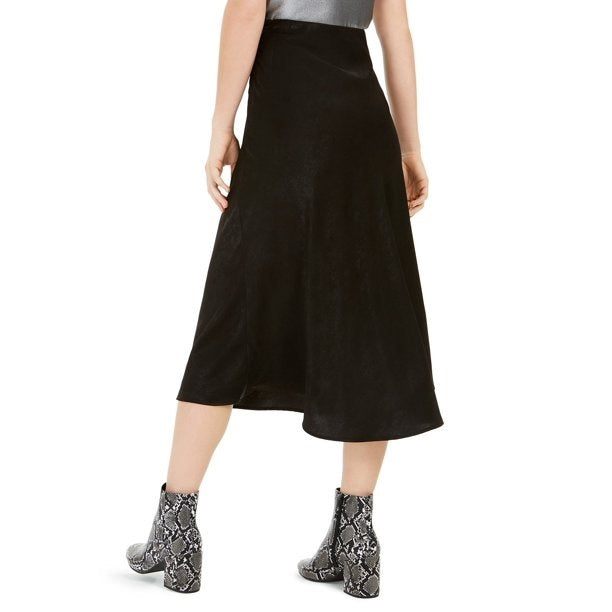 Approx. 34" long; A-line silhouette|Hidden side zipper closure|High-low hem|Shimmer finish