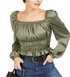 Bar III Women's Square Neck Smocked Puff Sleeve Top Green Size X-Large