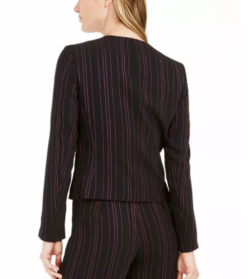 Bar III Women's Striped Open Front Jacket Black Size Medium