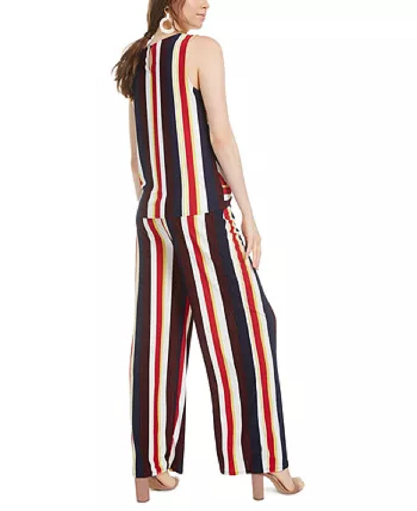 Vertical stripes in varied sizes and vibrant shades line up in this fresh twist on a knit top from Bar III|