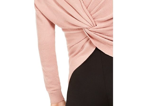 Relaxed fit; hits at thigh|Twist back detail; asymmetrical hem, can wear twist detail in front or back|Long sleeve|Acrylic/nylon/wool|Machine washable