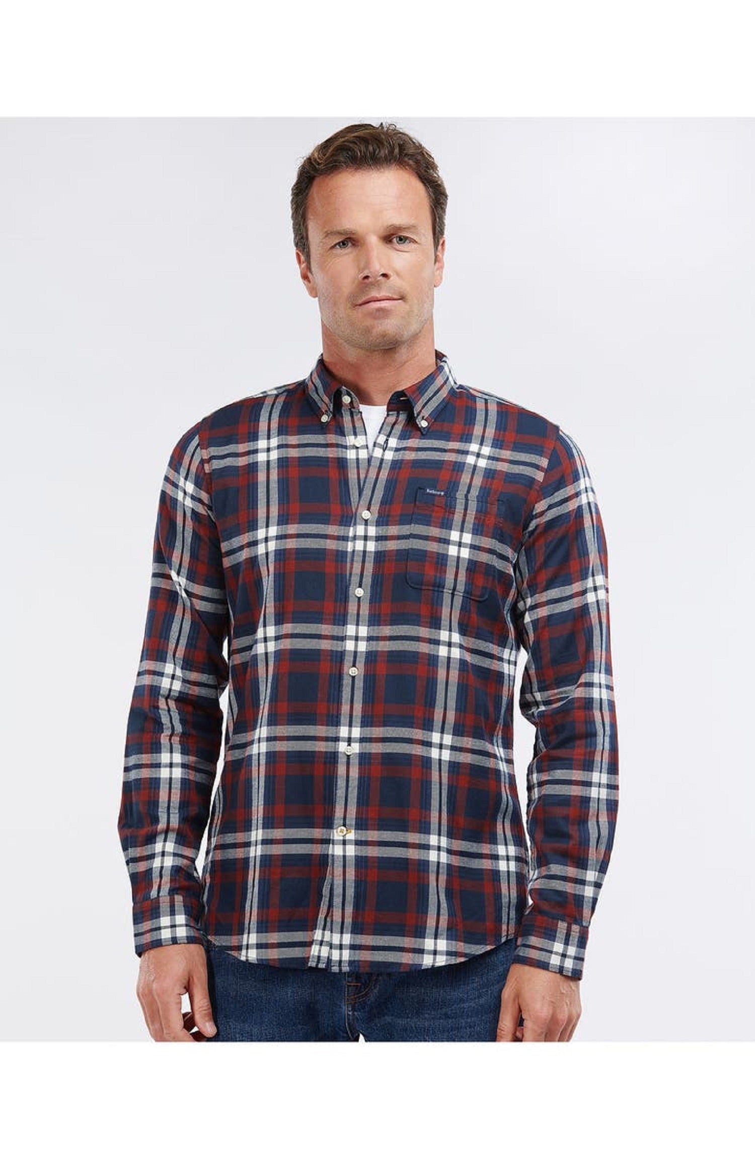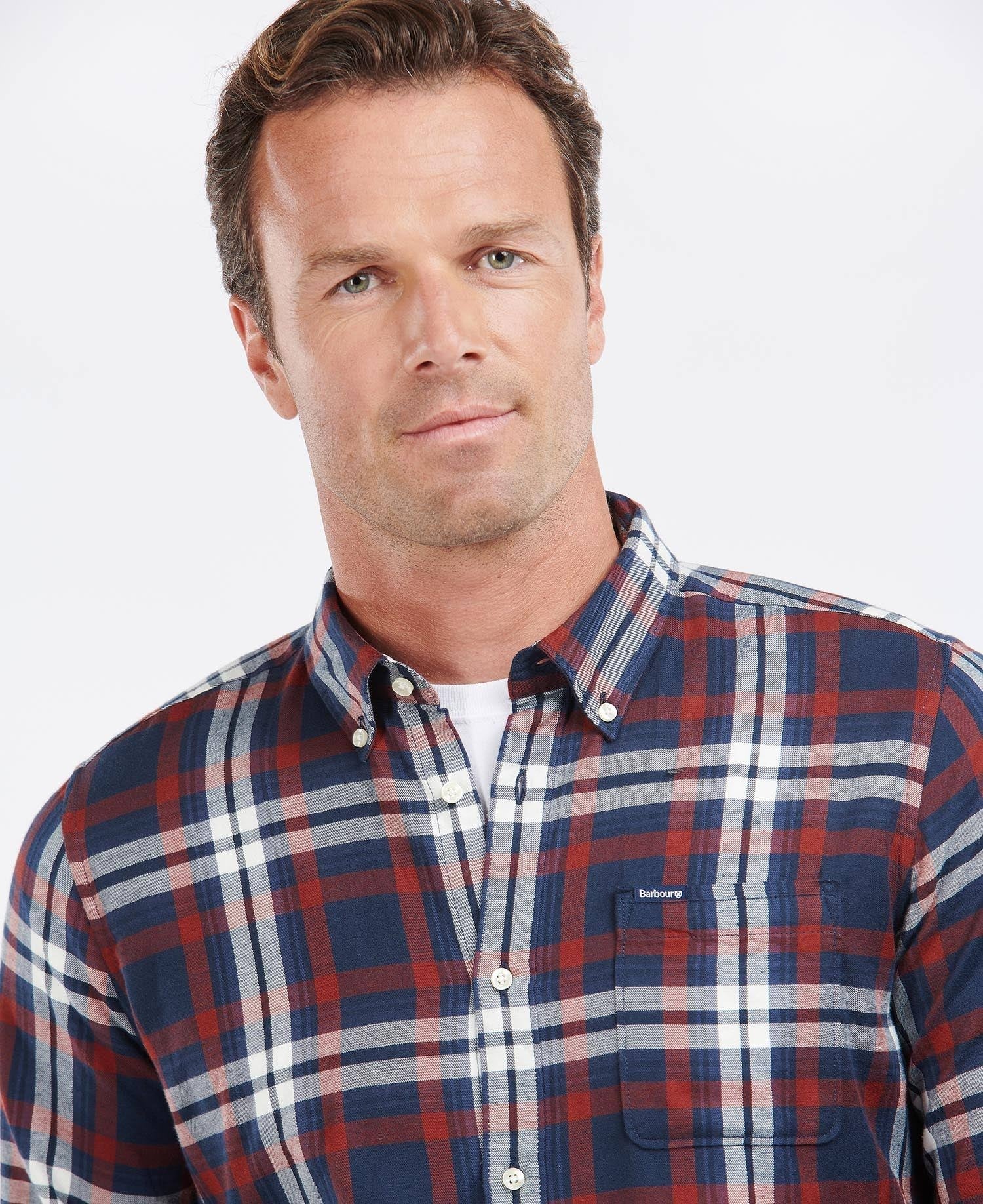 Barbour Men's Hilltop Tailored Fit Plaid Flannel Button Up Shirt Blue Size XX-Large