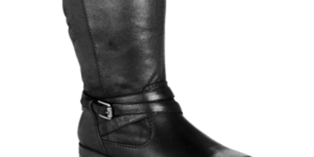 Put an equestrian-inspired twist to leggings and skinny jeans alike in crisscross buckled straps and classic straight profile of the casual-chic Alysha riding boots by BareTraps.| 1-1/4 heel| Shaft height; 13-1/2; Circumference; 14-1/4; measured on a size 6| Round-toe riding boots with zipper closure| Buckled strap details at ankle and back| Elastic panel for enhanced fit| NOTE; Shaft height and circumference vary by size