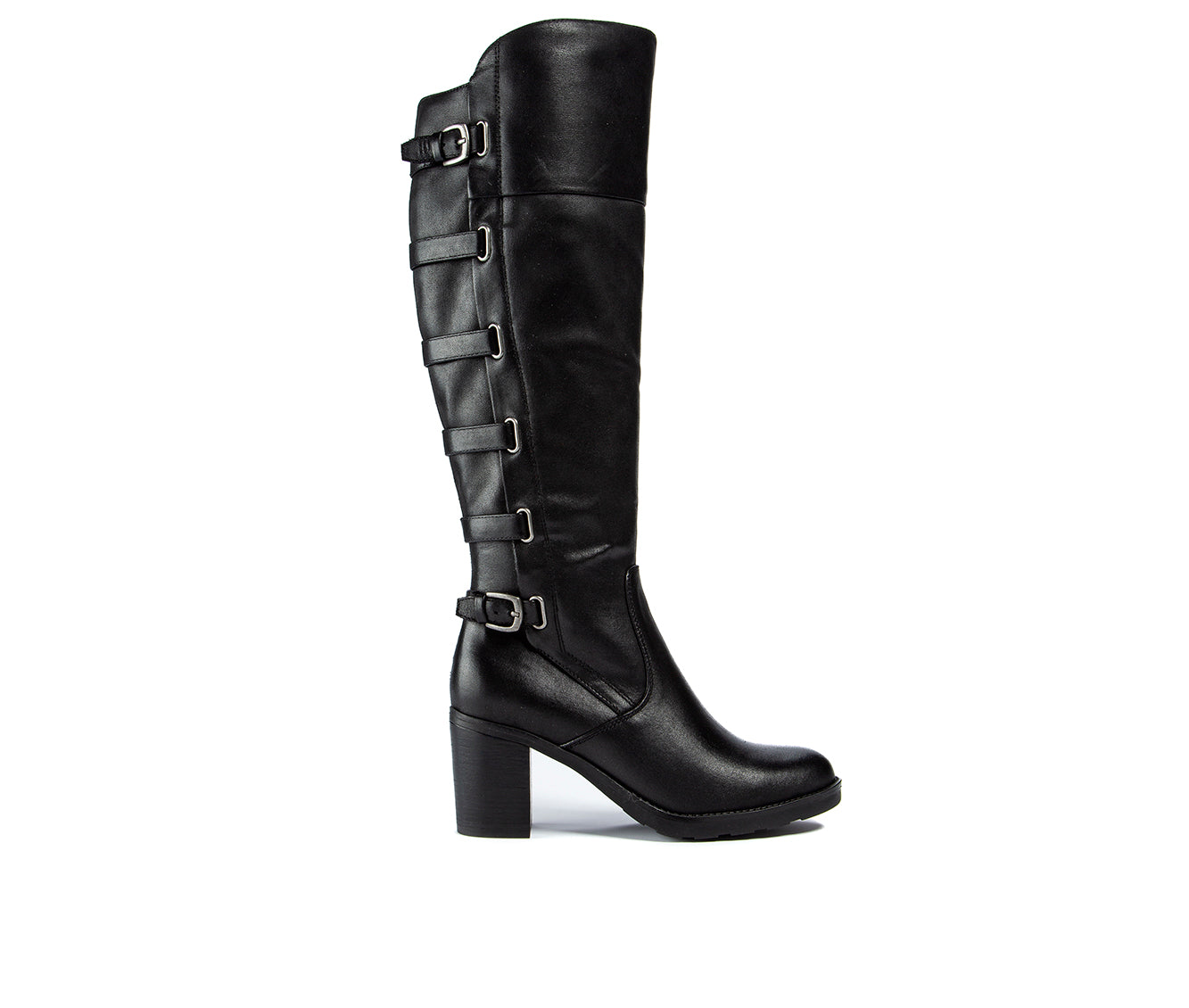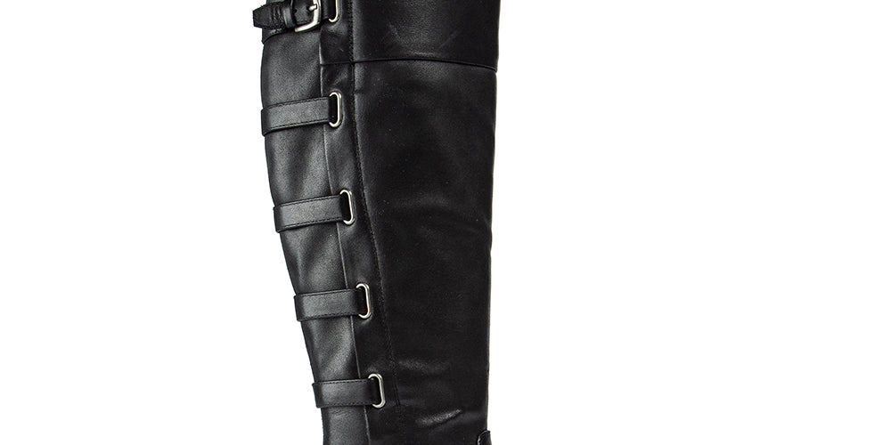 Baretraps Women's Cushioned Buckle Accent Strappy Gyllian Round Toe Block Heel Zip up Boots Black Size 9.5 M