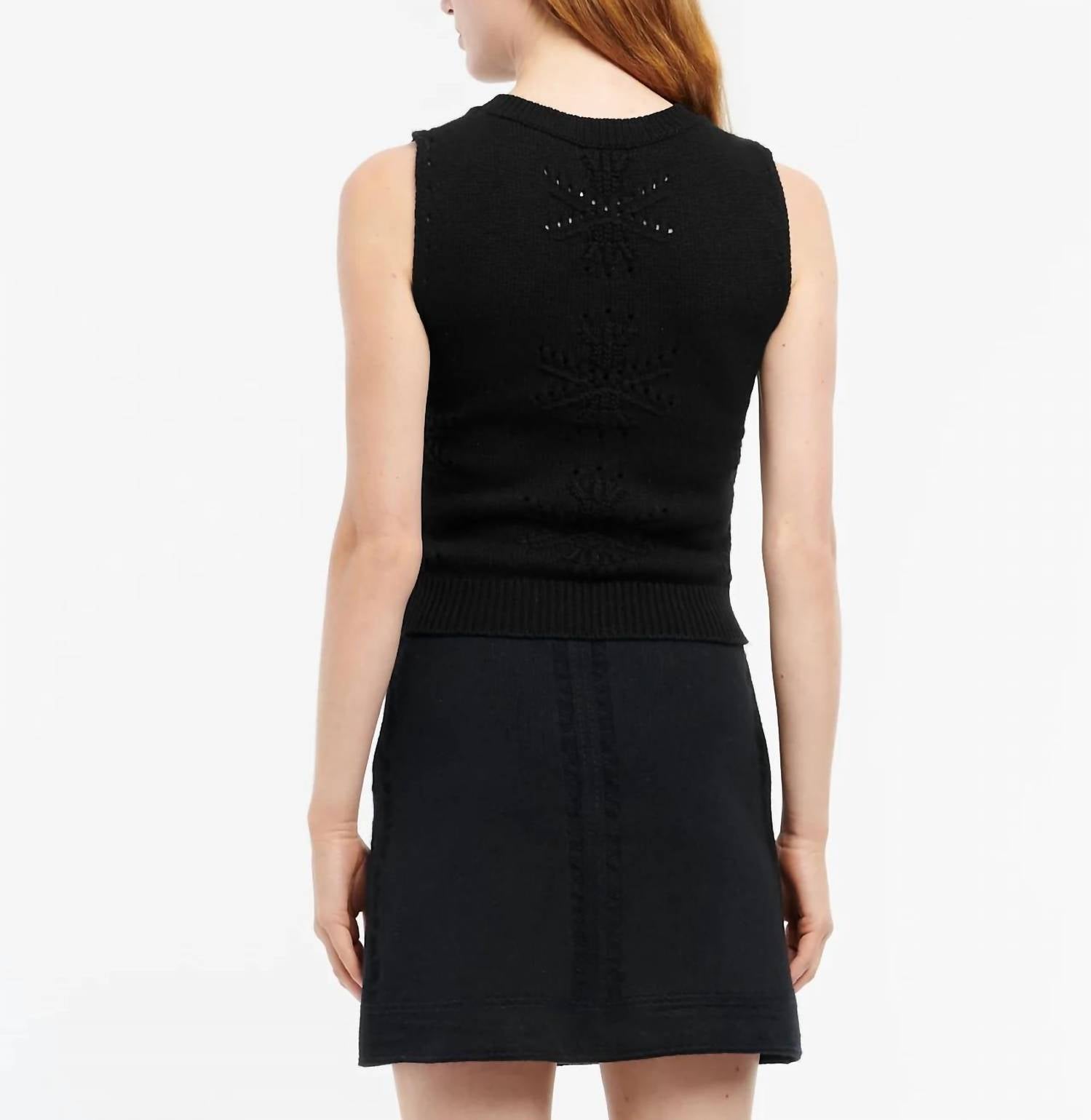 The ultimate go-to sweater, expertly crafted to provide the perfect combination of warmth and style. Its classic design and soft fabric make it a must-have addition to your wardrobe. Discover the luxurious comfort of the Barrie Cashmere And Cotton Top, a merger of heritage and craft in rich black. This sleeveless top is a testament to Scottish artistry, featuring a textured pattern that pays homage to the iconic Saint Andrews cross. The composition boasts a blend of 64% cashmere and 36% cotton, expertly knitted in Scotland for a structured silhouette. Closure: Metal button closure. Care: Hand wash.