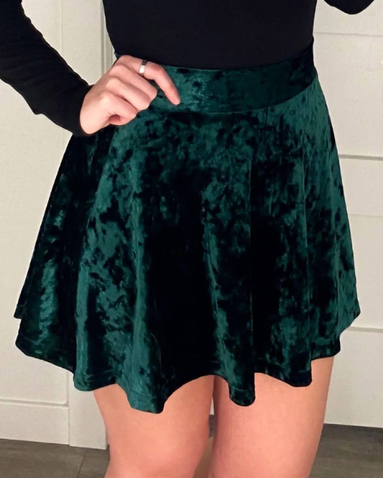 The perfect mini skirt does exist. Unveil effortless elegance with the Under Wraps Mini Skirt by BB Dakota, crafted in a captivating Sycamore Green. This skirt, perfect for women who appreciate minimalist trends, features a sleek circle-style silhouette in soft velvet fabric. Designed for an easy pullover wear, it effortlessly combines style with simplicity. Care Instructions: Machine wash.