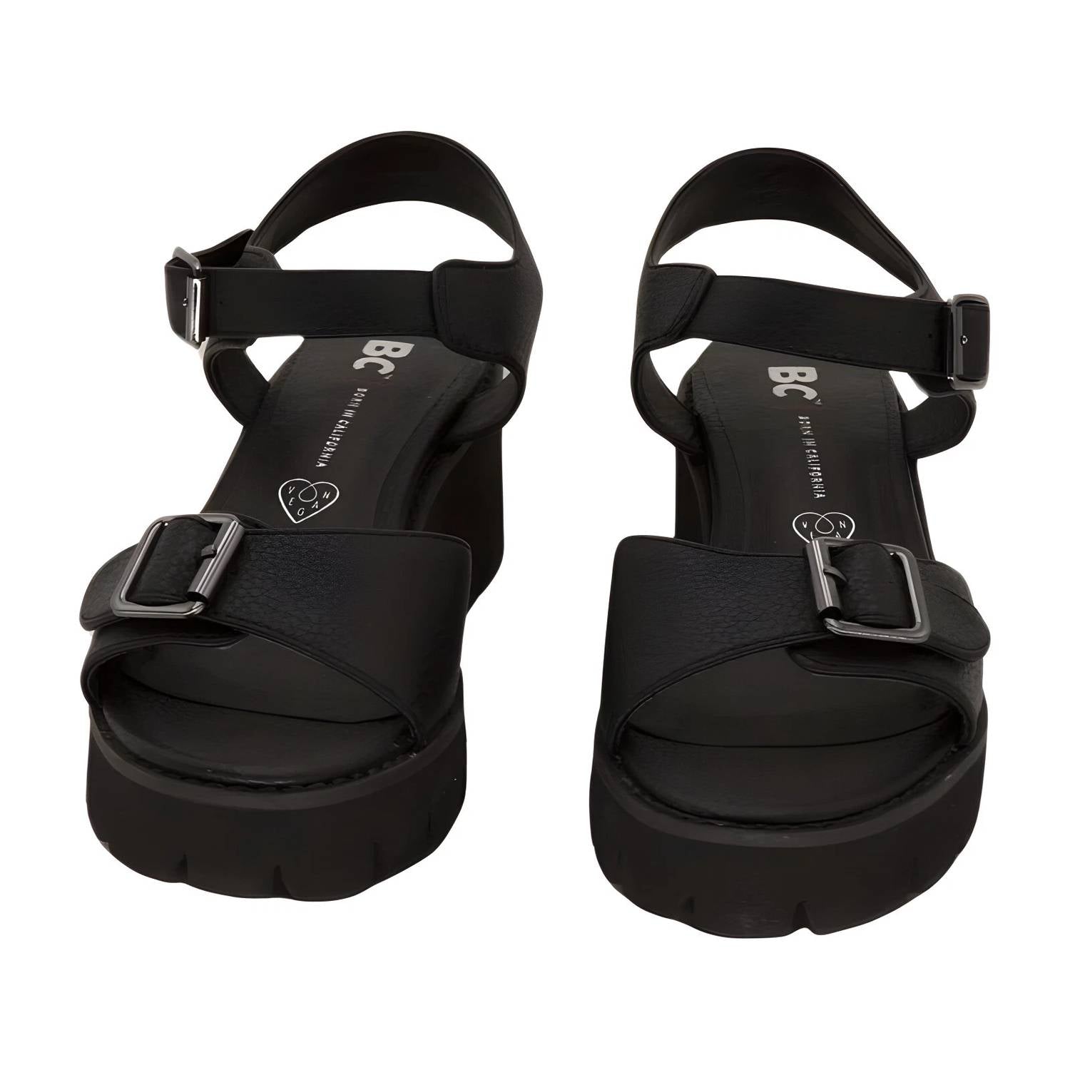 Step into sustainable style with the Women's So Famous Heeled Sandal by BC Footwear. These chic black sandals feature a vegan-friendly design and are crafted with a durable synthetic rubber sole for enhanced stability. Perfect for women who value ethical fashion, these sandals are not only stylish but also conscious of the environment. Flaunt the open toe design paired with a chunky heel for a versatile addition to your shoe collection.