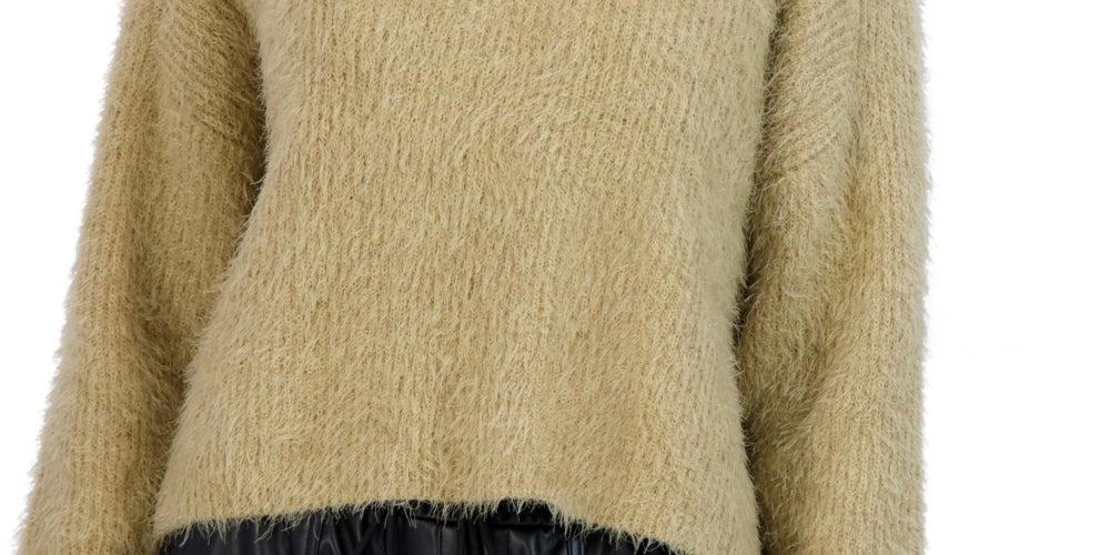 BCBGeneration Women's Fuzzy Pullover Crewneck Sweater Brown Size X-Small