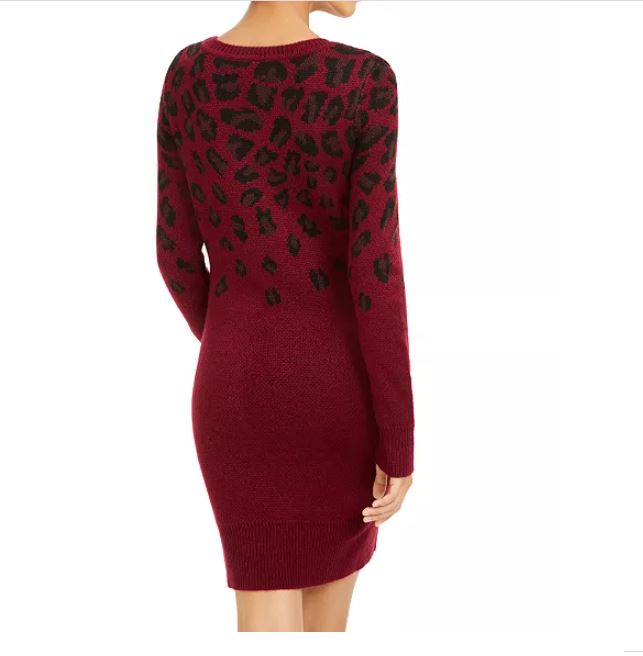 Approx. 34" long from center back neck to hem. Length is based on size medium and varies 1/2" between sizes|Crewneck; Bodycon silhouette|Pullover styling|Placed cheetah print at front & back bodice; ribbed cuffs & hem|Unlined|Acrylic
