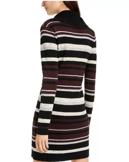 Approx. 34" long from center back neck to hem. Length is based on size medium and varies 1/2" between sizes Cowlneck; Bodycon silhouette Pullover styling Ribbed knit; allover speckled stripes Unlined Acrylic