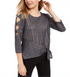 BCX Junior's Cut Out Sleeve Asymmetrical Top Gray Size Medium