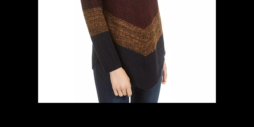 BCX Juniors' Mitered-Stripe Asymmetrical-Hem Sweater Grey/Red Size Small