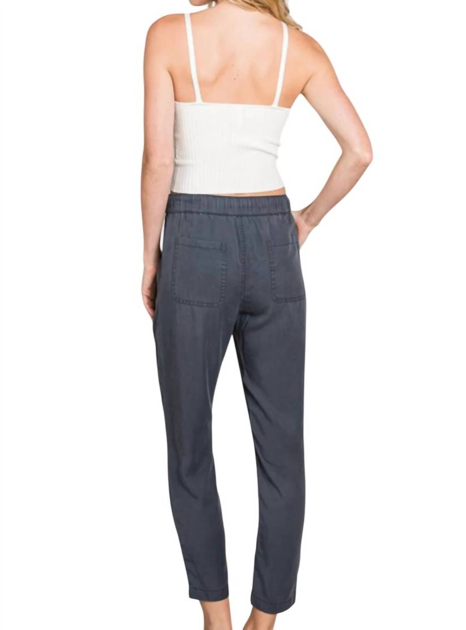 Stay on-trend and showcase your impeccable taste with these adaptable and stylish cropped pants. The perfect length to wear with your favorite mules. You'll love the fit! Pull-on drawstring joggers with side pockets, ribbed trim, and elastic waist. Made from 100% sustainably produced Tencel® lyocell with closed-loop processing. Machine wash and tumble dry.