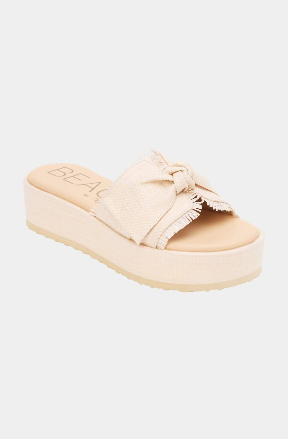 Classicly cute and all-day-wearable. We love this sandal. Introducing the Women's Sunda Slide Sandal by Beach by Matisse, a perfect blend of comfort and minimalist style for the modern woman. These sandals feature an open toe design and a platform heel, making them ideal for dinner parties or casual spring outings. The natural color adds a touch of elegance, effortlessly complementing various outfits. Slip them on for a chic and comfortable look that transitions seamlessly from day to night.