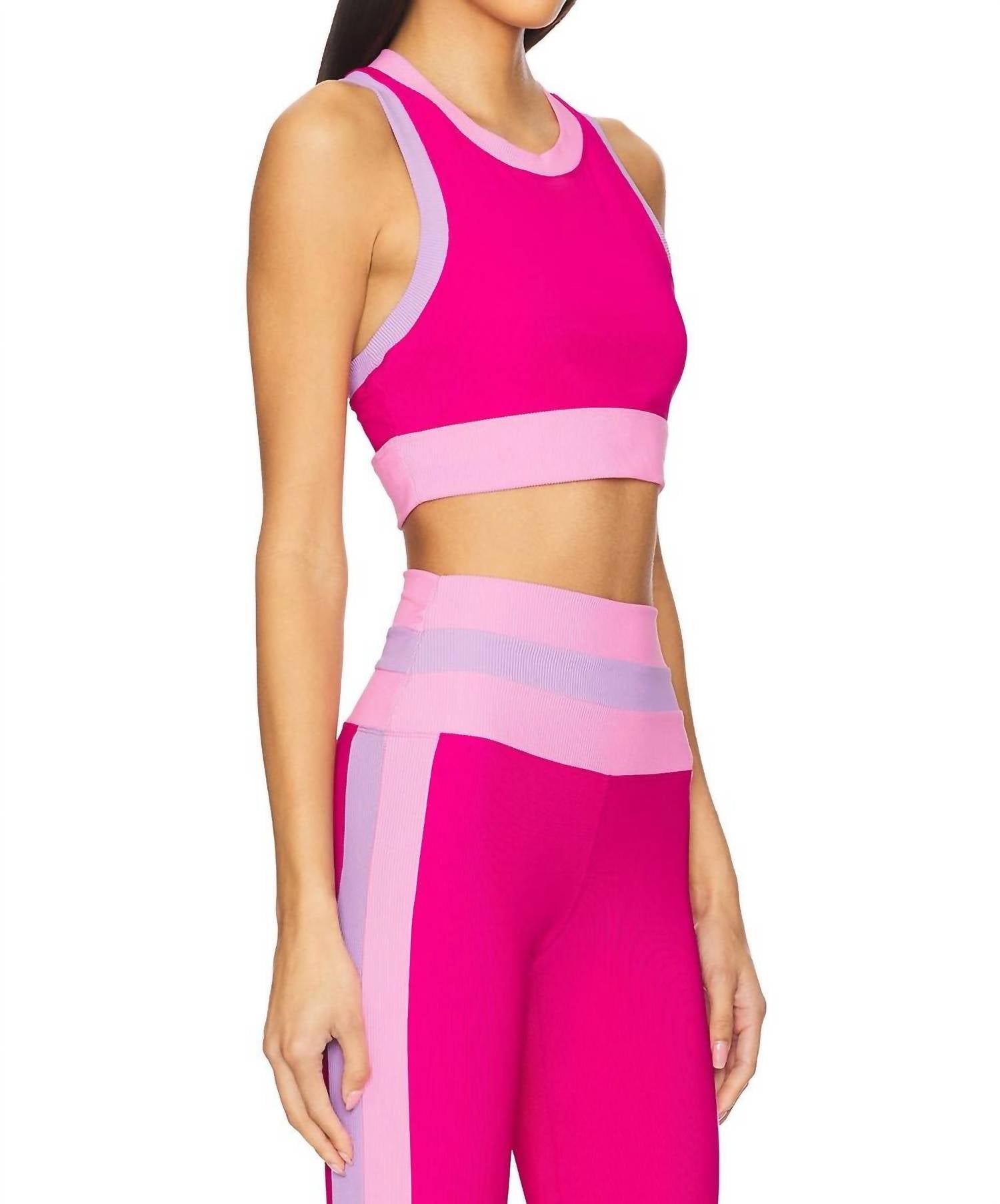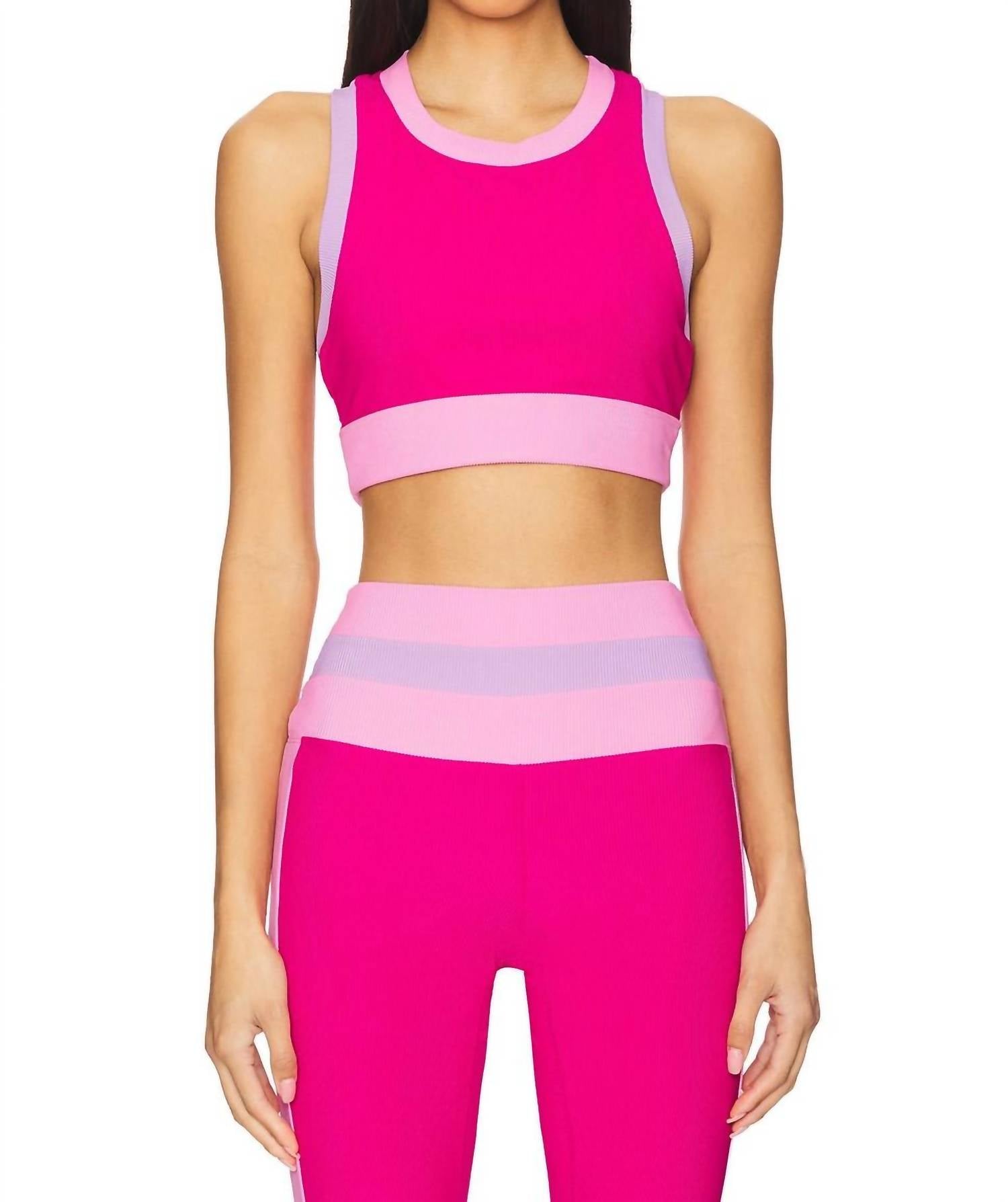 A women’s activewear crop top offering a textured look with its ribbed fabric. Made from a nylon blend, it is composed of 2% polyester and 18% spandex, featuring a lining of 75% nylon and 25% spandex. It has a convenient pull-on closure and a crewneck design, with the sleeveless cut perfect for workouts or casual outings. Care for this patterned top is a breeze, as it is machine washable.