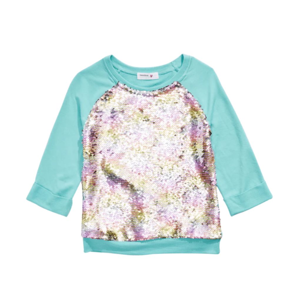 Beautees Big Girl's Flip Rainbow Sequin Top Blue Size X-Large