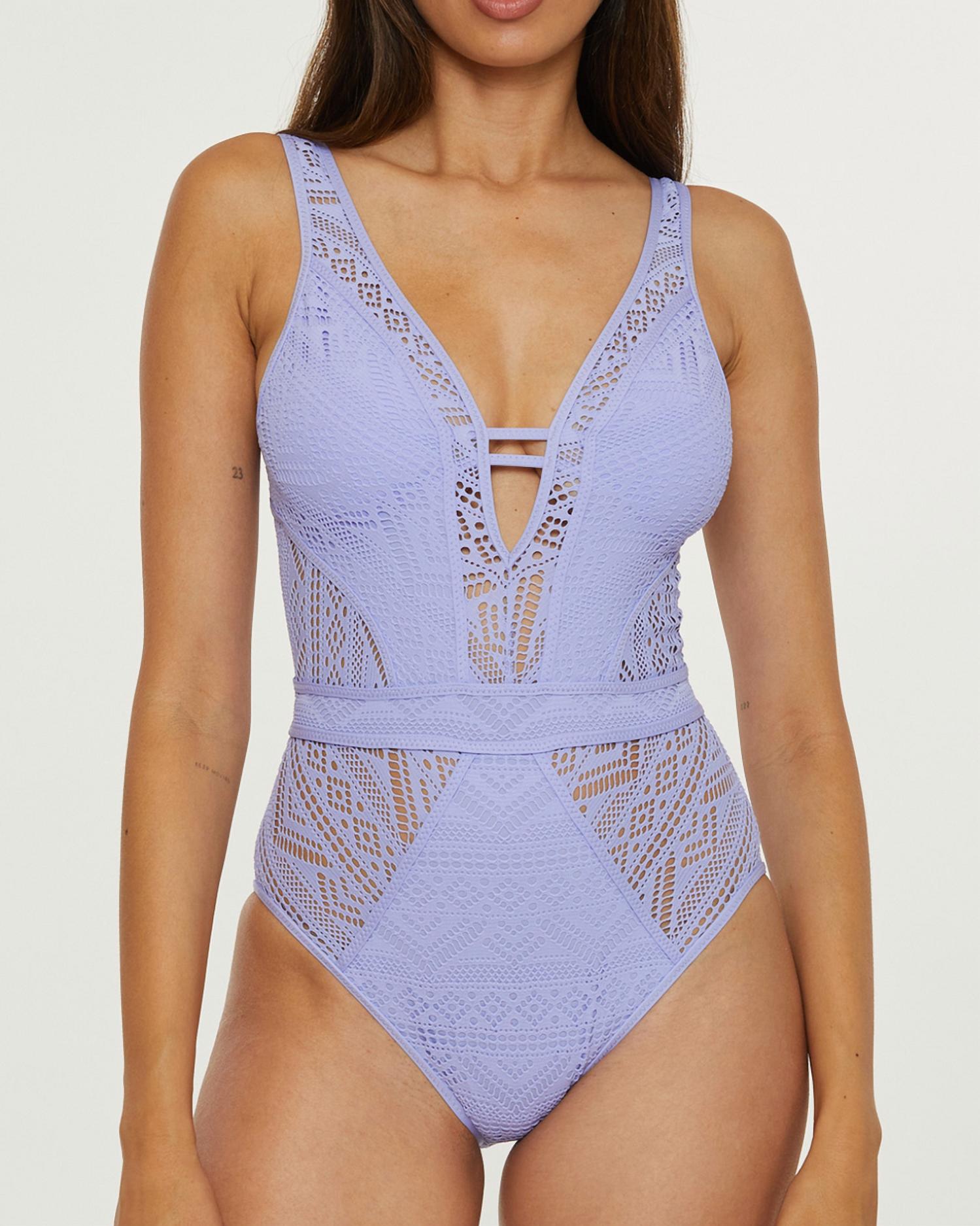 A one piece so chic you could even wear it as a bodysuit with your favorite pair of jeans. Introducing the Color Play One Piece Swimsuit by BECCA in a stunning Bellflower hue, perfect for beach days this summer. Crafted from 91% nylon and 9% spandex, this swimsuit offers a comfortable, stretchy fit with a flattering design. Featuring adjustable straps with gold ring sliders, a tie-back closure, and a shelf bra with removable soft cups, it ensures a customizable and supportive wear. Fully lined for comfort with moderate rear coverage, this solid pattern swimsuit is versatile and chic, making it a must-have for your swimwear collection. Care: Hand wash and lay flat to dry.
