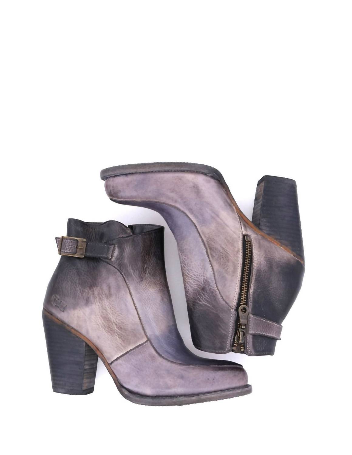 Say hello to the perfect, most versatile boot. The ankle height makes this style easily transition from day to night. Wear them with your favorite skinny jeans and tee for a more laid back look, or pair them with your favorite mini dress and jacket for a night out on the town.Chrome and formaldehyde free, vegetable tanned leather. High heel bootie in our unique finishes with antique brass buckle. Goodyear welted leather sole. 3.5' shaft height, 3.5' hollow wood leather wrapped heel. Made in Mexico.