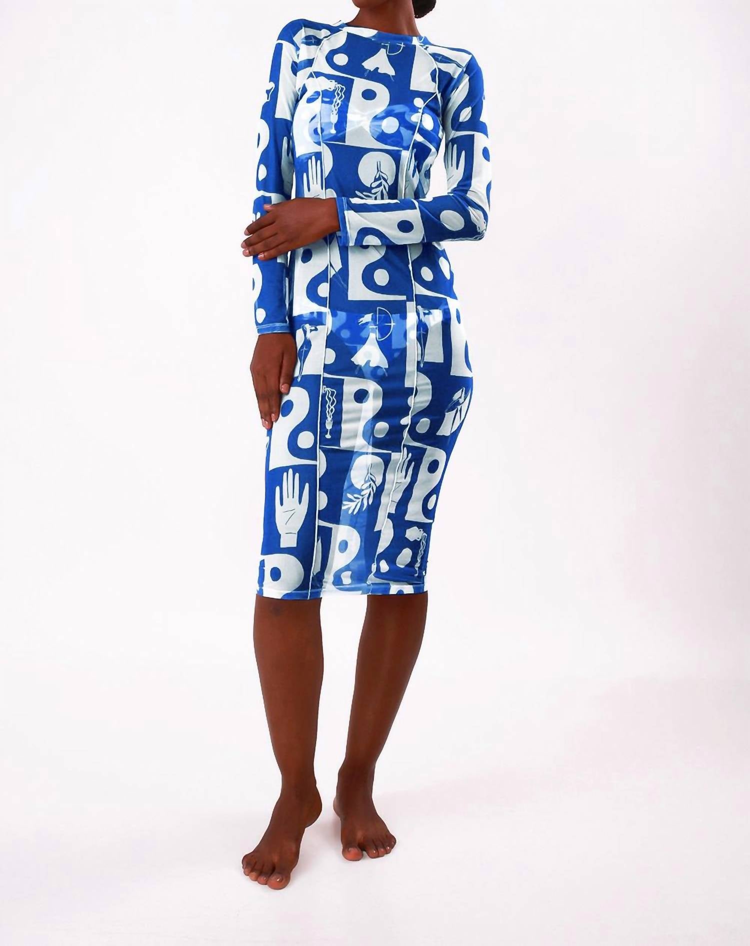 You're going to want to pack this for your next vacation! Introducing the Alana Tulle Dress by Bela Brand, a stunning coverup in elegant Kozmo Blue. This long-sleeved dress is crafted from a sophisticated blend of 83% Polyamide and 17% Spandex, offering strength, durability, and a comfortable, stretchy fit. The soft tulle fabric adds sophistication, with a flattering fitted design and midi length, perfect for a variety of occasions. Care instructions recommend hand washing and line drying to preserve the dress's elasticity and color.