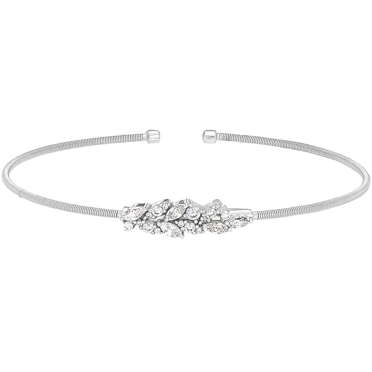 Bella Cavo - Rhodium Cable Cuff Bracelet with Simulated Diamond Leaf Pattern