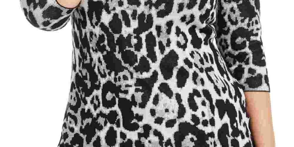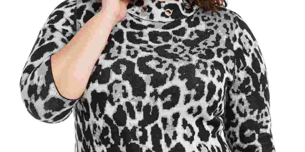 Imported|3/4-sleeves|Mock neckline with grommets|Patterned knit
