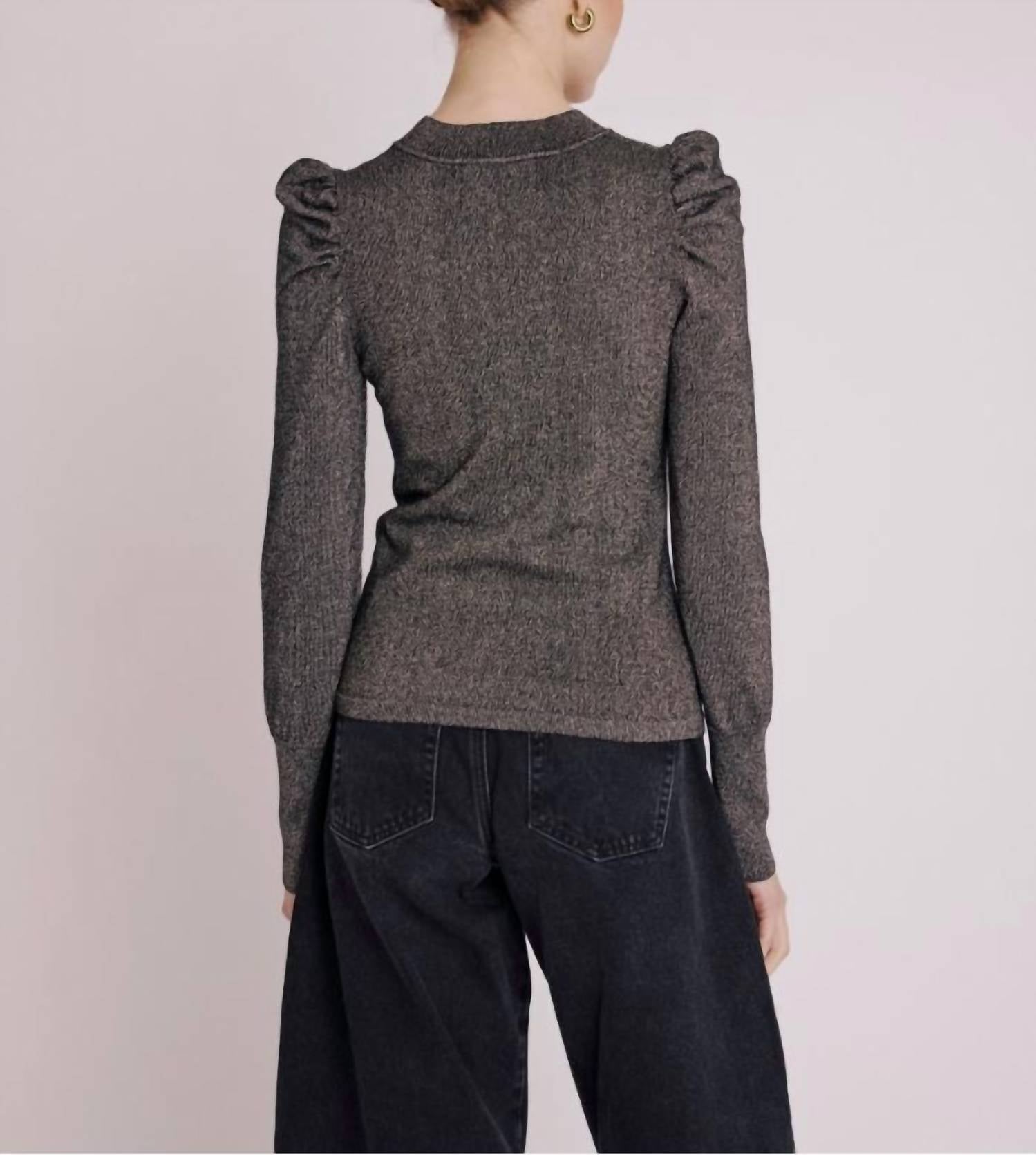 A versatile blouse that works from desk to dinner! Introducing the Astra Lurex Mock Neck Top by Berenice, crafted for the chic maximalist woman. This gray blouse features stylish puff long sleeves and a sophisticated mockneck. Closure: Pull On. Care instructions: Machine wash. Ideal for a spring dinner party or Easter celebration.