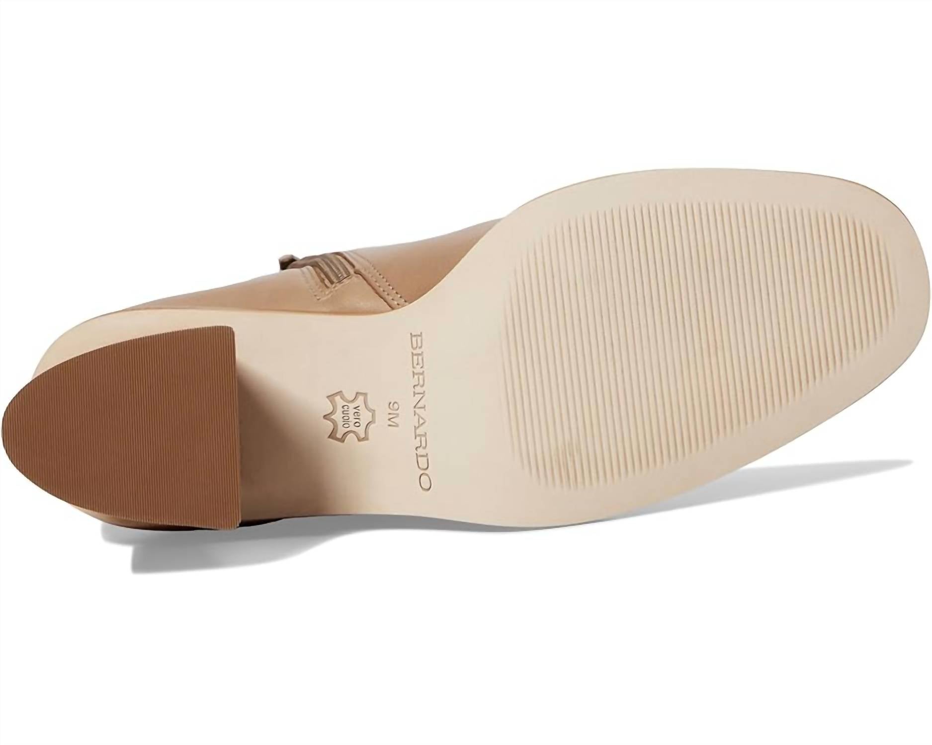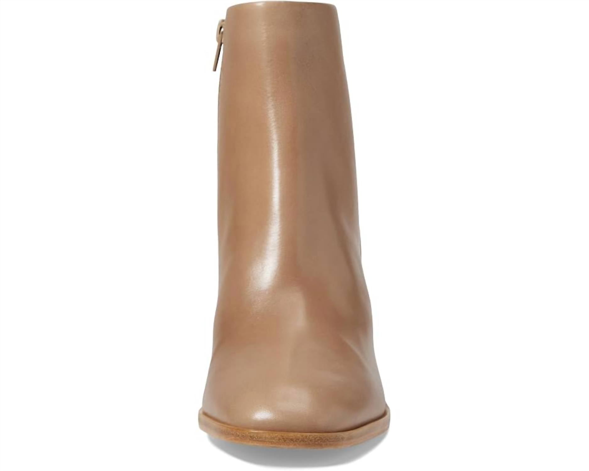 A stylish boot with a comfortable fit and the perfect amount of height. These classic boots are the perfect addition to any outfit and can be worn season after season. Step into luxury. Crafted in Sand Antique Calf leather for a truly sophisticated look. Feature a square toe, glove leather construction, and a stylish zippered side closure for a sleek finish. Made in Brazil. Boast flared block heels measuring 2.36 inches. Comfortable Ultrasuede lining with a leather insole. Ideal for a medium width fit. Promise both elegance and comfort.