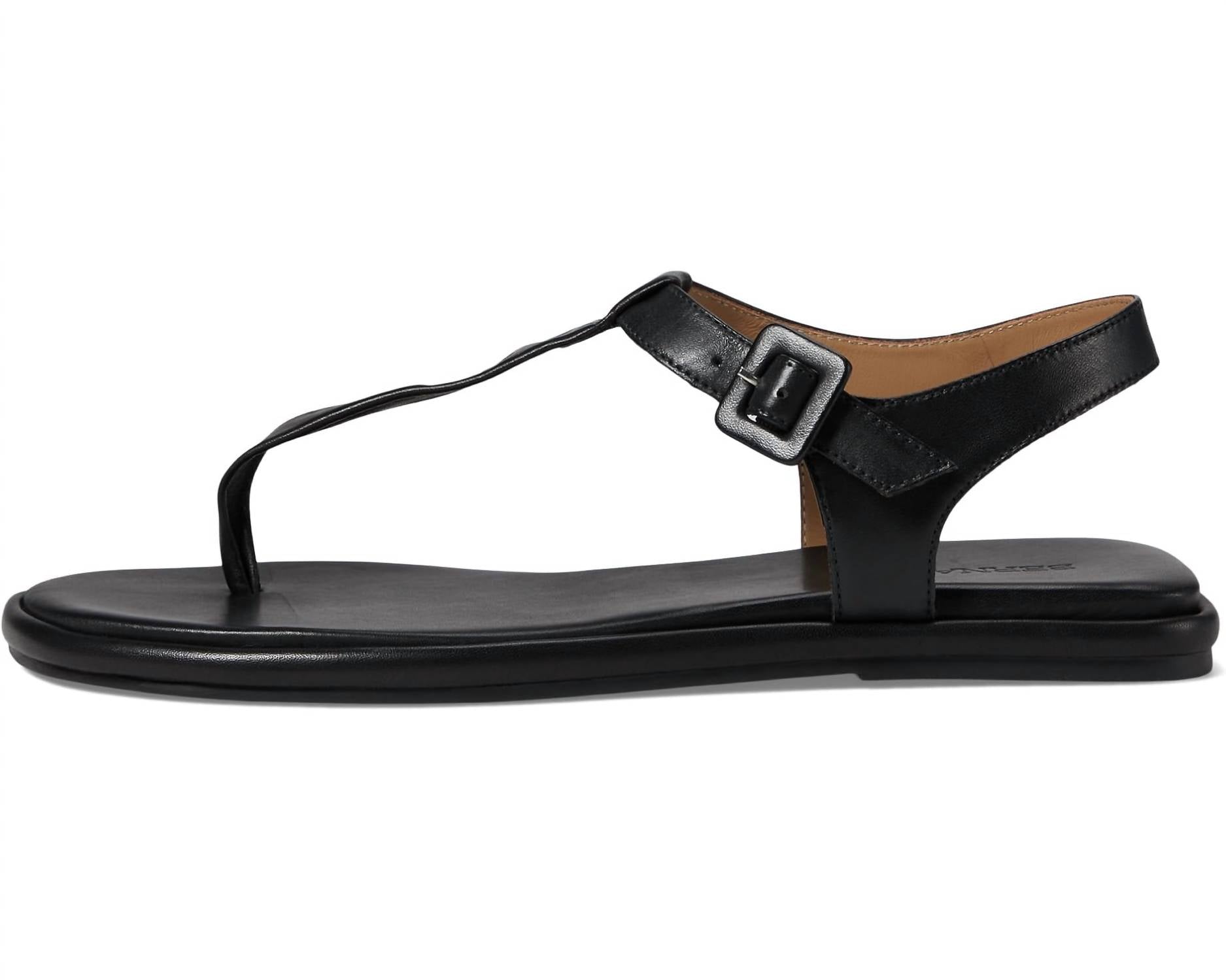 Classicly cute and all-day-wearable. We love this sandal. Meet the Women's Tucson Sandal by BERNARDO, a chic option in Black Glove Leather for the modern wardrobe. These sandals showcase a leather upper with a buckled ankle strap closure and an open square toe silhouette. Country of Origin: Made in Brazil. Heel Height: 1 inch, offering a comfortable flat heel design.