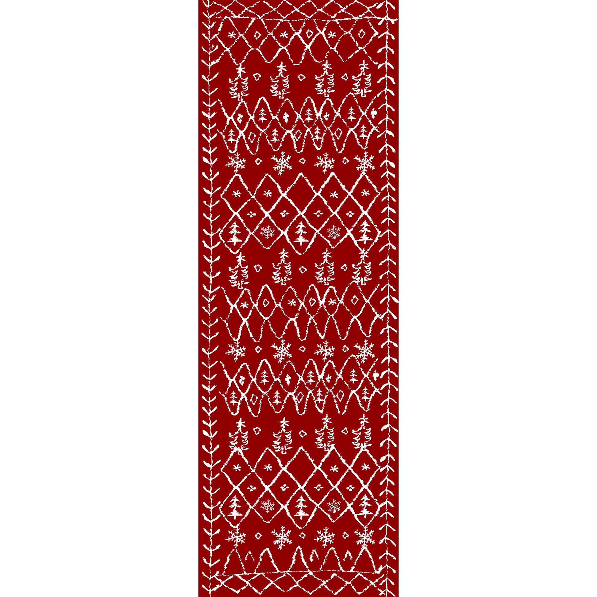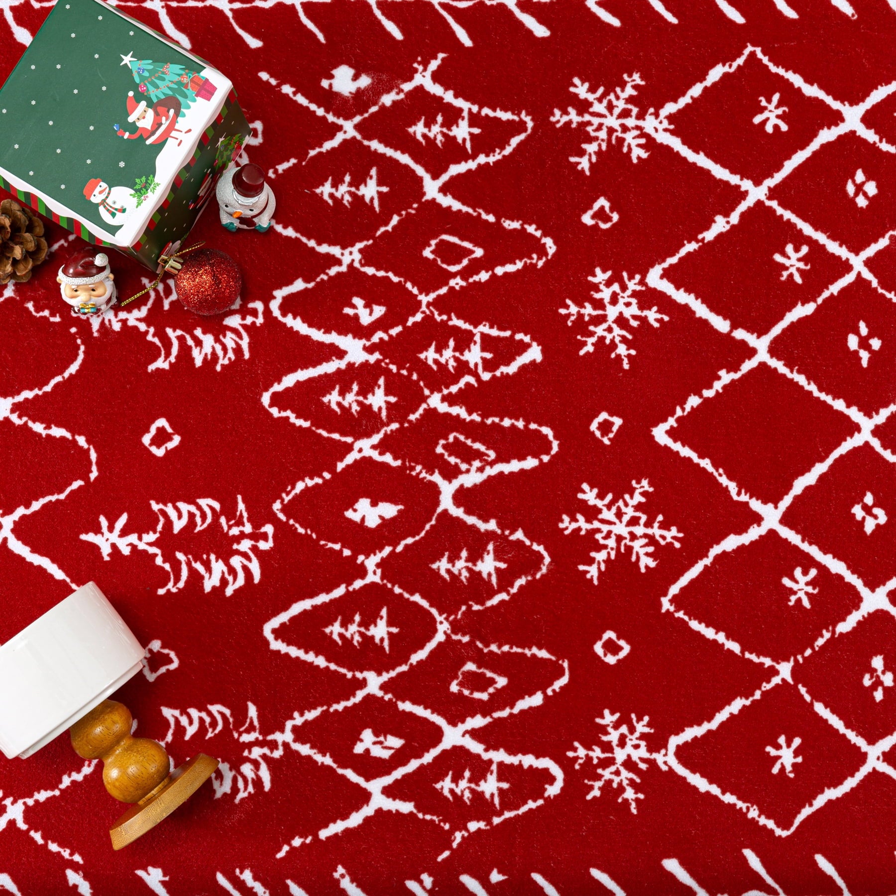 Christmas themed design | Measures 2 x 6 feet | Ideal for hallway| kitchen| bathroom| living room| entryway and laundry room | Bohemian style | Washable | Non-slip feature | Red color | Holiday decor | Throw rug design | Durable material | Easy maintenance