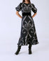 The Antonia Midi Dress by BEYOND by Vera is an elegant choice for both special occasions and everyday wear, available in the tranquil Fountain Black floral print. This cotton creation features short puffed sleeves with elastic cuffs, adorned with subtle frills for added charm. Designed with a slender A-line silhouette, it is a flattering fit-and-flare dress that accentuates the waist with a featured belt. Closure: Pull on. Care instructions: Machine wash and tumble dry, ensuring easy maintenance for frequent use.