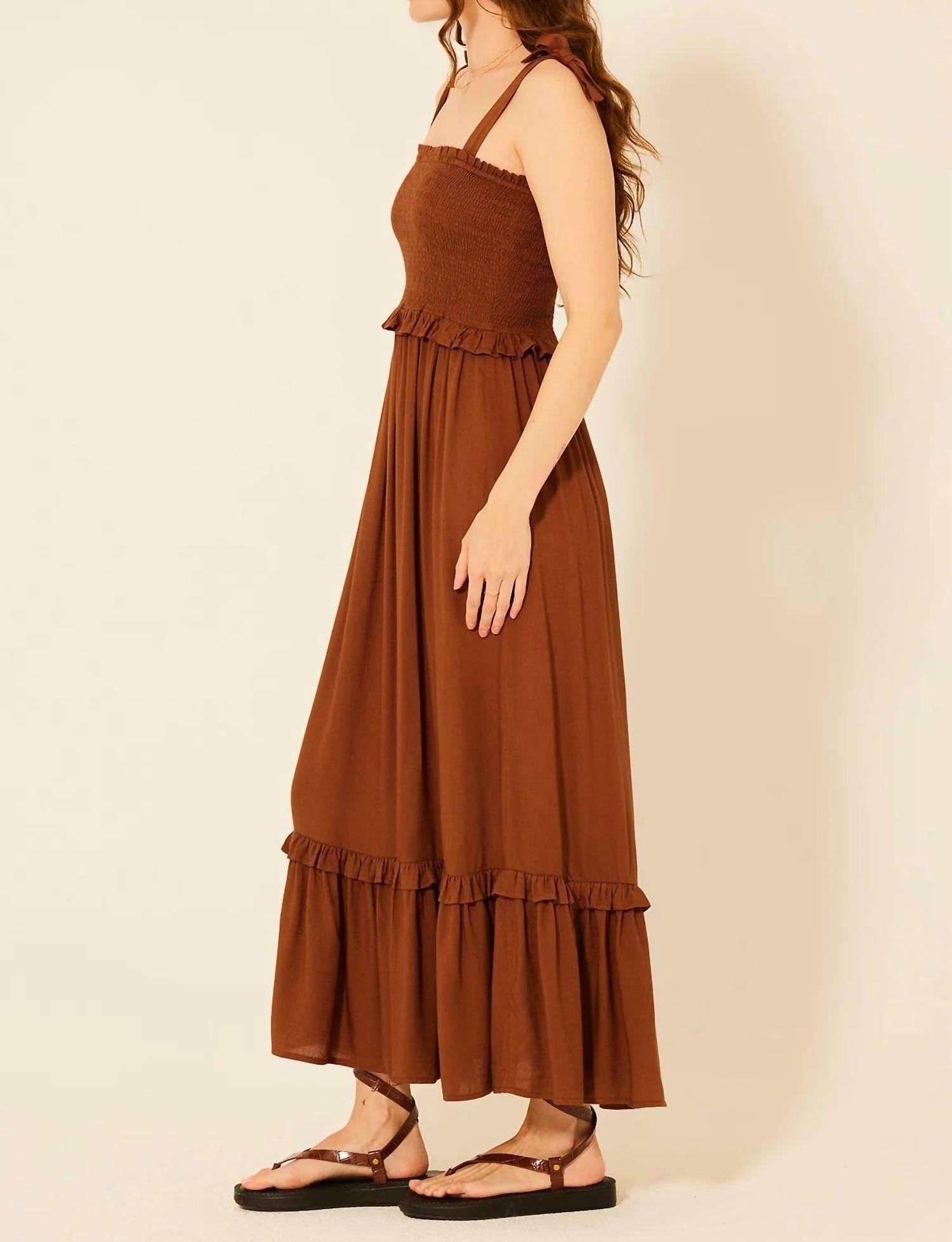 Who doesn't love a good maxi dress? This one you'll be reaching for season after season. Introducing the Linda Maxi Dress by BILA77, a must-have for your summer wardrobe in a stunning monochrome brown. This sleeveless dress is expertly crafted from 100% Rayon for a comfortable and breathable fit with an elegant A-line silhouette. The design features a chic squareneck and a convenient pull-on closure, perfect for vacation outings. Care for this solid-patterned piece by hand washing as needed for longevity.