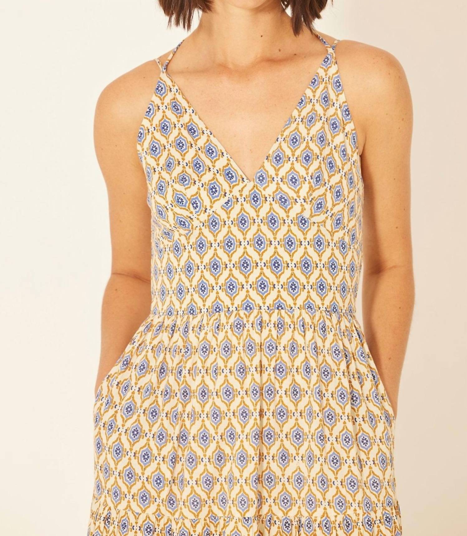 Style this maxi with your favorite statement necklace and sandals for the perfect look. Elevate your summer wardrobe with the Majorca Maxi Dress by BILA77, a stunning sleeveless piece in camel designed for ultimate comfort and style. Made from 100% cotton, this patterned A-line dress boasts a boho chic appeal ideal for vacations. It features a flattering V-neckline and practical pockets. Care instructions include hand washing.