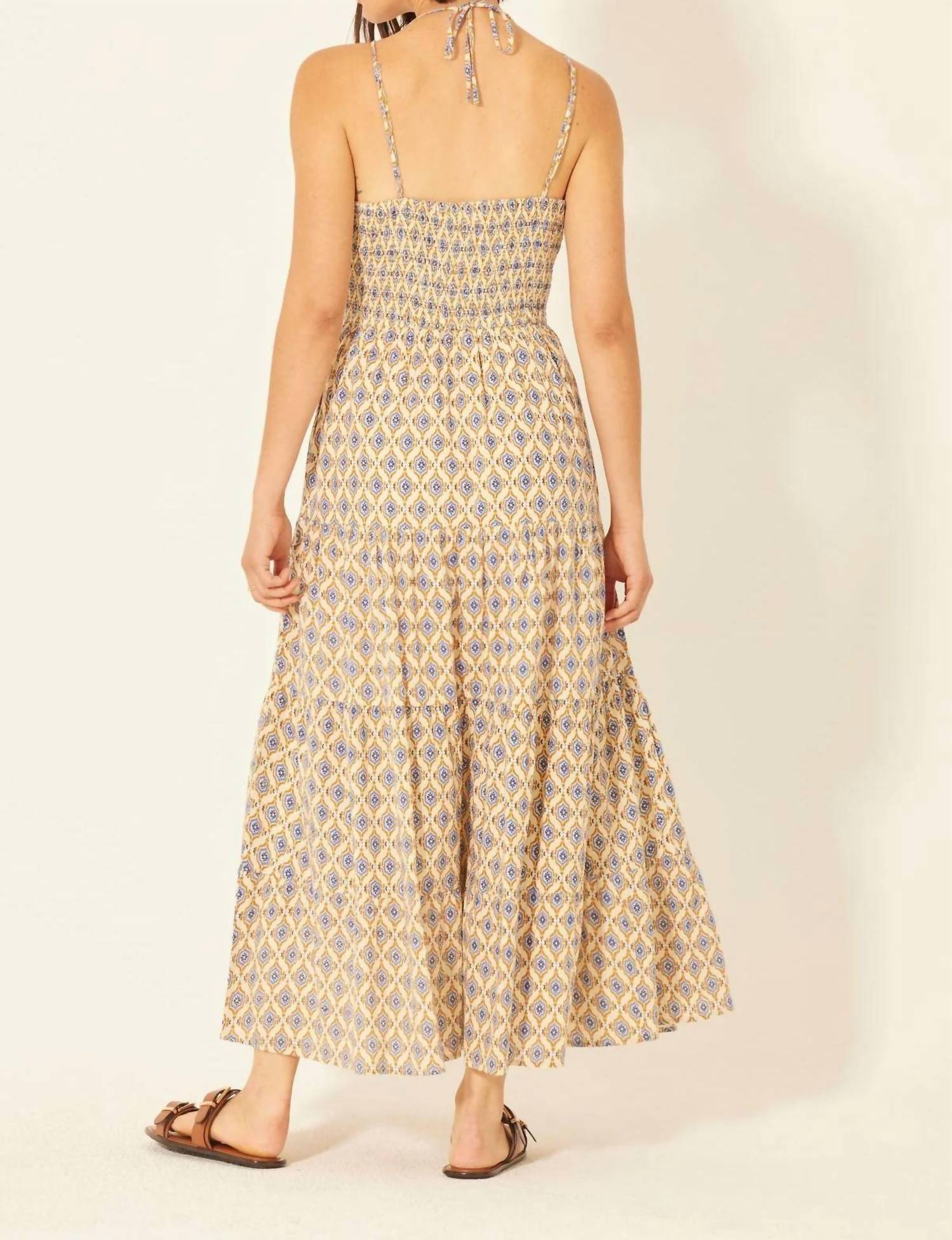 Elevate your summer wardrobe with the Majorca Maxi Dress by BILA77, a stunning sleeveless piece in camel designed for ultimate comfort and style. Made from 100% cotton, this patterned A-line dress boasts a boho chic appeal ideal for vacations. It features a flattering V-neckline and practical pockets. Care instructions include hand washing.