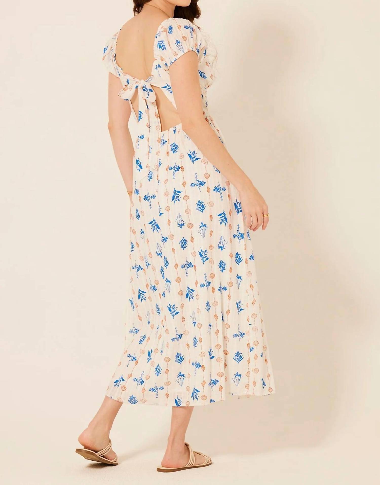 Elevate your summer wardrobe with the Pala Mesa Midi Dress by BILA77, a boho chic staple for any vacation. Crafted from 100% BCI cotton, this patterned midi dress features a flattering sweetheart neckline and a breezy A-line silhouette with short sleeves. The tie closure ensures a perfect fit in vibrant multi colors, ideal for making a statement. Care: Hand wash only.