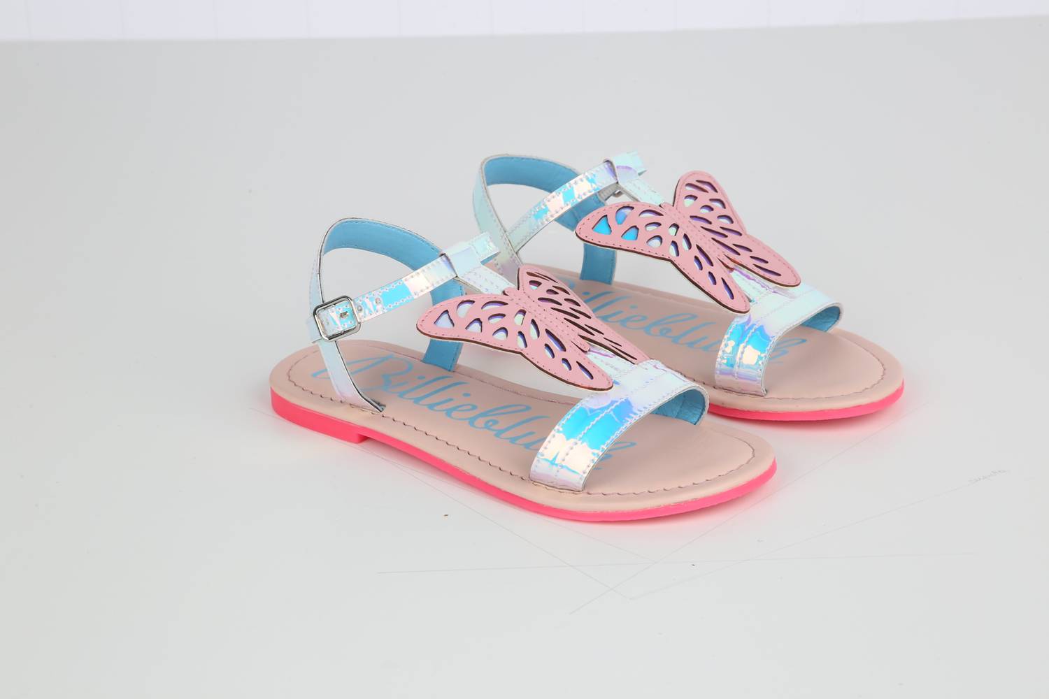 Boost her summer style with the Iridescent Sandals With Large Butterfly by Billieblush. Crafted from faux leather, these sandals showcase iridescent accents for a rainbow of color and bold butterfly details for a fabulous finish. Designed with a medium width and open toe, they're perfect for little girls looking to make a statement. Ideal for summer and streetwear trends, they feature a flat heel that ensures all-day comfort.